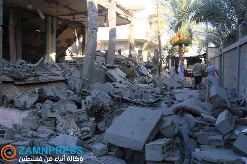 الدمار الذي لحق بمنزل القيادي في سرايا القدس في خان يونس وائل أبو طه جراء قصفه صباح اليوم