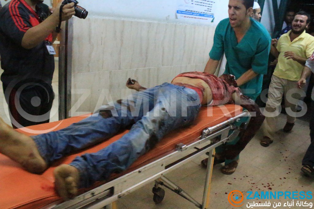صور  لشهداء واصابات جديدة وصلت  لمشفى ناصر جراء قصف مدفعي عشوائي مكثف على حي المنارة بخان يونس‎ . عدسة سعيد قديح +مهند قديح
