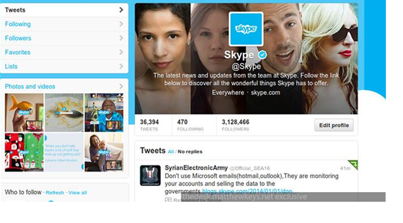 وقالت مجموعة القراصنة الموالية للرئيس السوري بشار الأسد، عبر حساب تويتر الخاص بها، إن خطوتها هذه هدفها التنبيه من محاولات مايكروسوفت المالكة لسكايب للتجسس على مستخدميها.