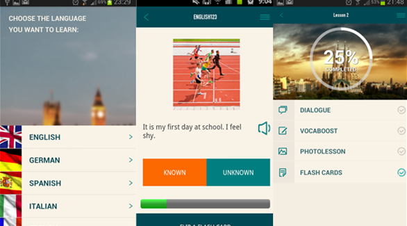 وتطبيق "Courses123 – language learning" المجاني يعتمد على هذا المفهوم، إذ يسمح للمستخدم بتعلم خمسة لغات هي الإنجليزية، الفرنسية، الألمانية، الإسبانية وأخيراً الإيطالية وبطريقة احترافية حسب ما نقله موقع 24.