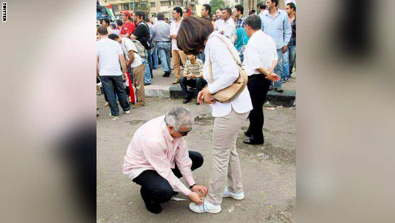 وكتبت في تغريدة مرففة مع الصورة عبر حسابها على تويتر، "أتمنى أن أقبّل يد هذا الرجل الذي انحنى ليساعد شريكته أو من كانت هذه السيدة كي لا تنحني هي، لاأعرفه وأتمنى أن ألتقيه."