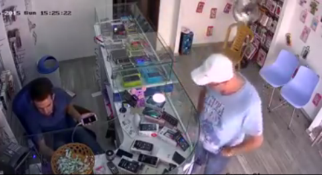 ويقوم اللص ومعاونه بإشغال صاحب المحل من خلال الحديث، ثم يغافله ويسرق جهاز لوحي ويقوم بإخفائه تحت ملابسه.