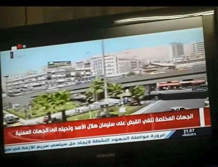 من جهتها، ذكرت الهيئة العامة للإذاعة والتلفزيون السوري أن سليمان الأسد قبض عليه في مزرعة بقرية كلماخو في ريف اللاذقية، في حين نقل المرصد السوري لحقوق الإنسان عن مصادر محلية قولها إن عملية الاعتقال تمت على الطريق بين اللاذقية والقرداحة.