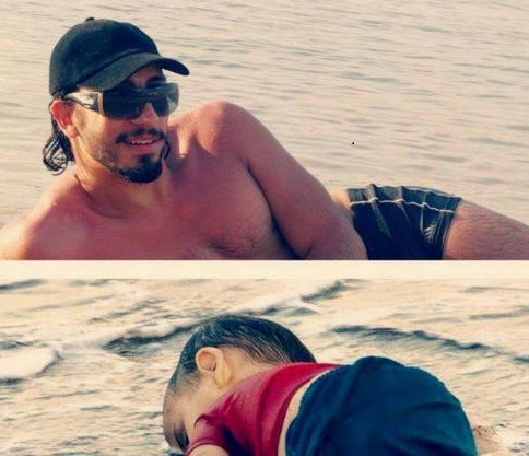 ولم ينته به الأمر إلى هذا التعليق، بل قام بنشر صورة له نائماً على شواطئ سوريا مرفقة بصورة الطفل إيلان ميتاً على شواطئ تركيا.