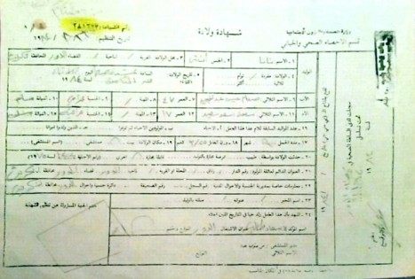 وتشير سبع وثائق، إضافة إلى شهادة ولادة، إلى أن الولادة حدثت عام 1984 بقضاء الدور قرب تكريت، وأنها مصدقة من الطبيبة التي أشرفت على ولادتها وهي سعاد طالب.