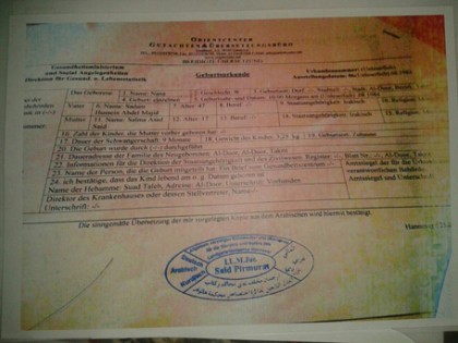 وطبقا لإحدى الوثائق ورقمها 638 والمؤرخة في 4/12/2015 فان السفارة العراقية في ألمانيا صادقت على صحة المعلومات التي وردت فيها من قبل القنصل العراقي هناك، واسمه «ياسر موسى جعفر» ومثبت عليها أنها مصدقة من قبل وزارة الخارجية الألمانية، وفق ما أفادت صحيفة رأي اليوم.