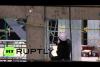 عامل تنظيف يتدلى بقدميه من نافذة بالطابق 15