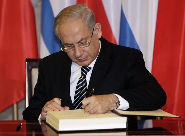"اعترفوا بدولة يهودية"، قال تنياهو. "طالما لم يفعلوا ذلك، لن يحل السلام. فقط حين يعترفوا بحقنا في أن نعيش هنا في دولتنا ذات السيادة، دولتنا القومية – فقط عندها سيكون السلام ممكناً".