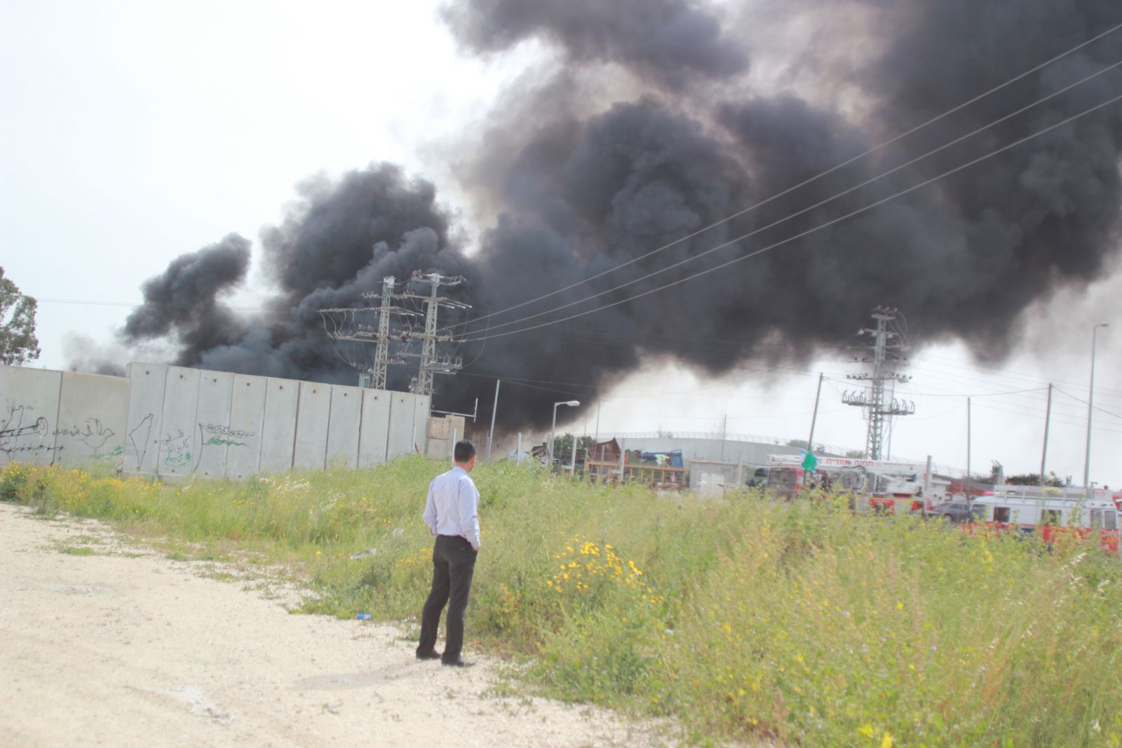 وكان دخان اسود كثيفا تصاعد من داخل المنطقة وانتشر في سماء المنطقة باتجاه الداخل الفلسطيني وفيما عززت القوات الاسرائيلية وسيارات الاطفاء الاسرائيلية من تواجدها بالمنطقة وحضور عدد من اجهزة الامن الى المنطقة .
