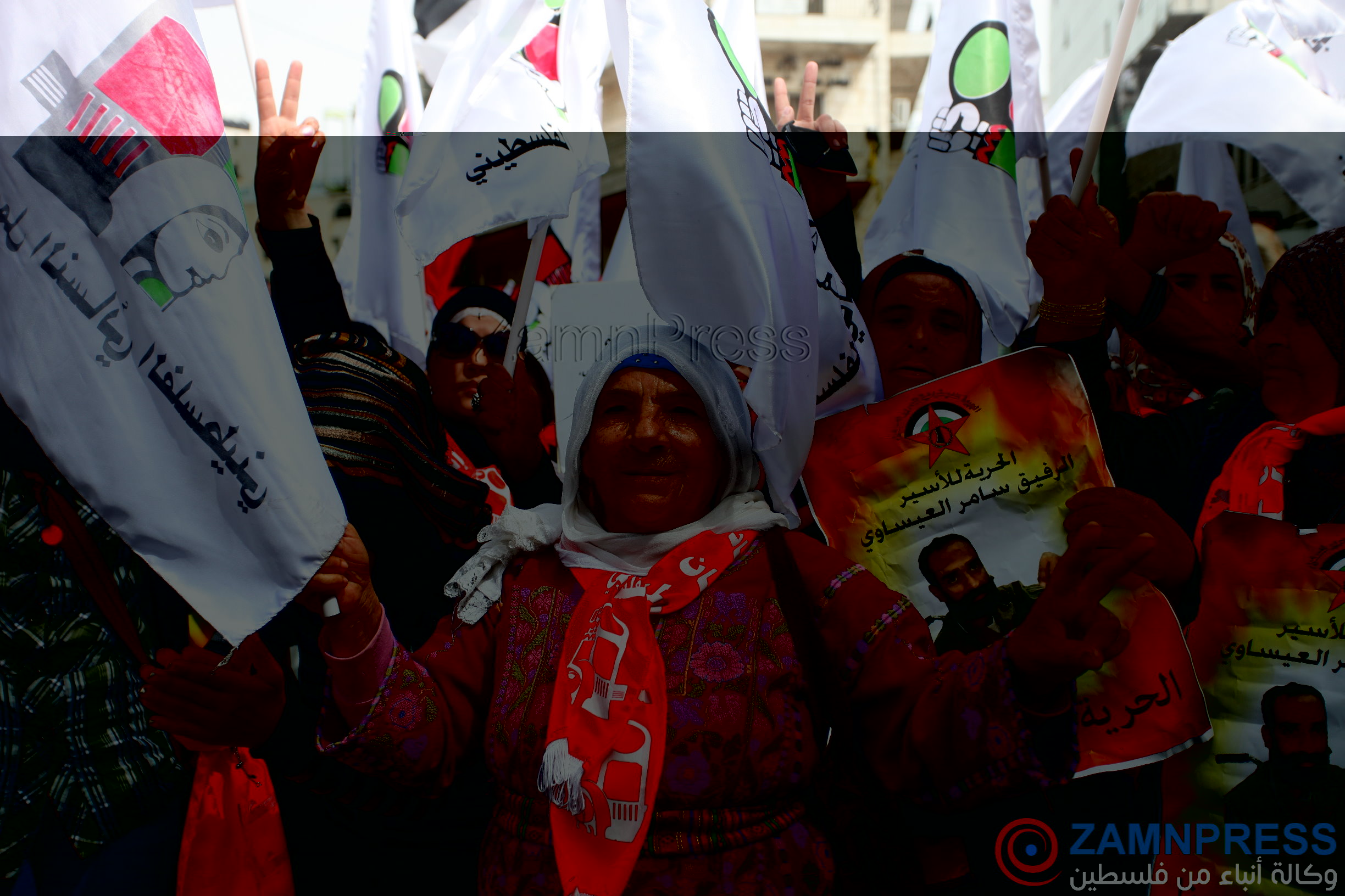 جابت مسيرة نسوية دعى لها اتحاد لجان العمل النسائي الفلسطيني شوارع مدينة رام الله تهتف بحرية الاسرى المضربين عن الطعام في سجون الاحتلال الاسرائيلي، ويأتي ذلك في ذكرى يوم المرأة العالمي. عدسة *رأفت حج علي*