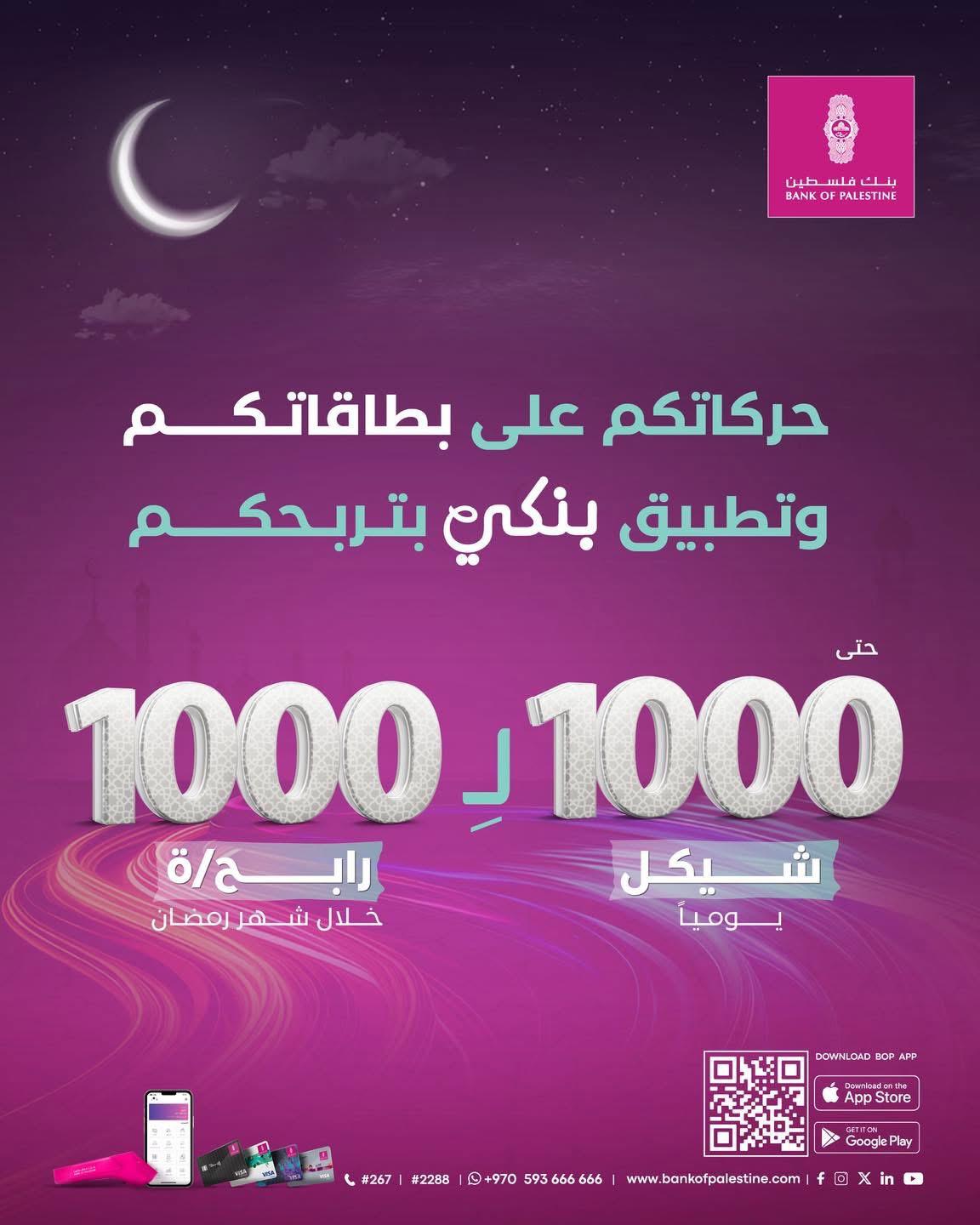 بنك فلسطين يطلق حملته الرمضانية بعنوان "حركاتكم على بطاقاتكم وتطبيق بنكي بتربحكم" حتى 1000 شيكل لـ 1000 رابح/ة