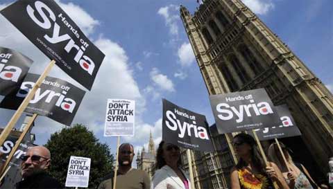 وشهد رئيس الوزراء البريطاني ديفيد كاميرون هزيمة سياسية بتصويت عدد من نواب حزبه، الى جانب المعارضة، ضد مشروع القرار، بينما تصاعدت الاصوات المعارضة لتحرك عسكري في سوريا. وتظاهر المئات امام البرلمان صباح الخميس مطالبين بعدم ضرب سوريا وفقاً لما أفادت به وكالة الأنباء الألمانية.