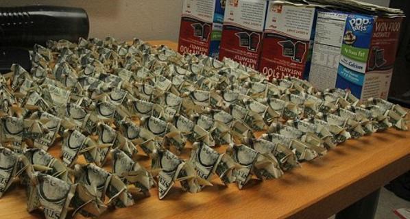 وقام رجل آخر السبت الماضي، بدفع مخالفته المرورية وتبلغ 137 دولارا، عن طريق طي 137 ورقة نقدية من فئة الدولار الواحد على شكل خنزير، وقدمهم إلى محكمة بلدية إحدى المقاطعات الأميركية بعلبتي كعك الدونات.