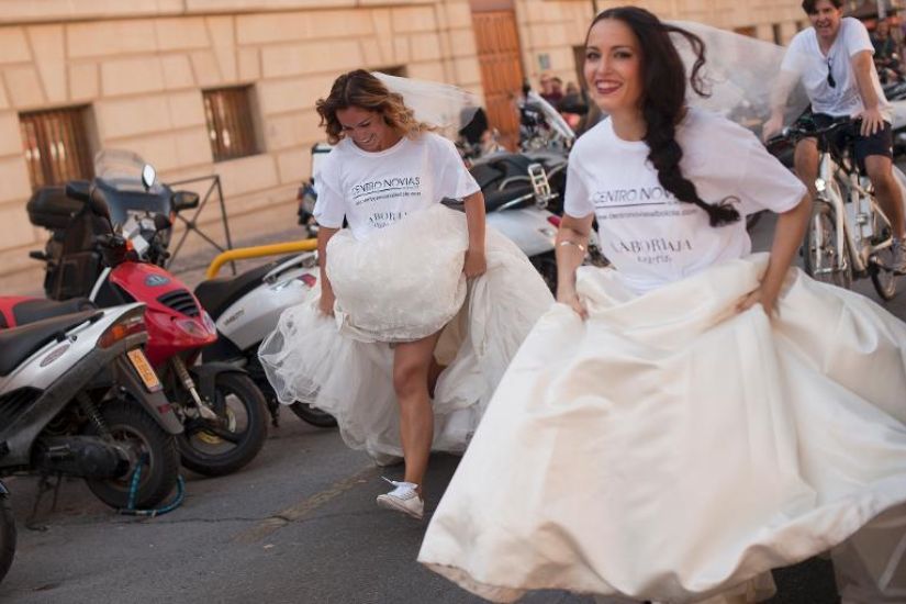 وشاركت نحو 30 مرشحة للزواج بالابيض و احيانا بفتسان العرس الذي رفعنه عاليا مظهرات الحذاء الرياضي الذي ينتعلنه، سباق "فرار الخطيبات" الخيري وهي سباق لجذب الزيجات "الى الاجواء الساحرة في غرناطة" على ما افاد المنظمون.