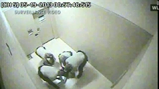 وأظهرت مقاطع فيديو من كاميرا أمنية، 4 عناصر شرطة - 3 رجال وأمرأة - وهم يدخلون دانا هولمز، إلى زنزانة ويقومون بتقييد حركتها وخلع ملابسها حسب ما نقلته سي أن أن بالعربية.