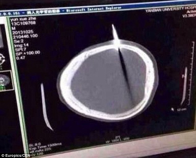 بالصور: سكين فواكه تنغرس في جمجمة رجل صيني