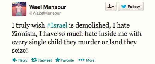 «إنني أتمنى صادقاً زوال إسرائيل، أنا أكره الصهيونية، وفي داخلي كره شديد مع كل طفل تقتله، ومع أكل أرض تصادرها»، كما أوردت صحيفة الحياة.