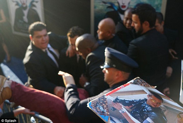 ونشرت الصحيفة البريطانية صوراً تظهر لحظة تعرض بيت للضرب، مشيرةً إلى أن شاباً قفز من فوق السياج ولكم بيت في وجهه بينما كان يوقع للمعجبين في العرض الأول من فيلم "ماليفسنت".