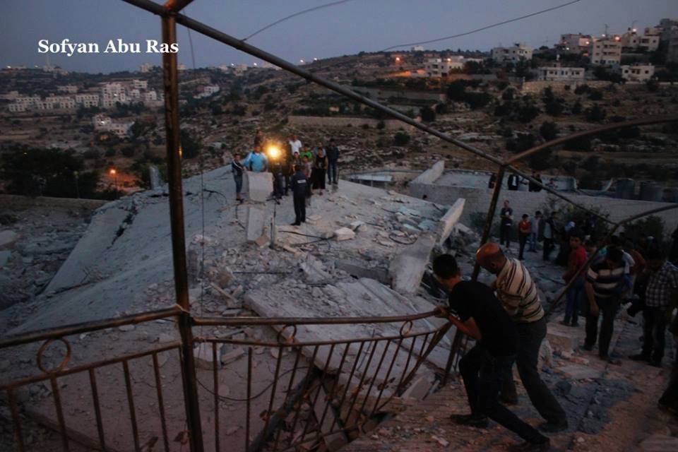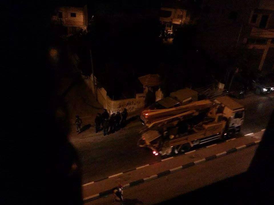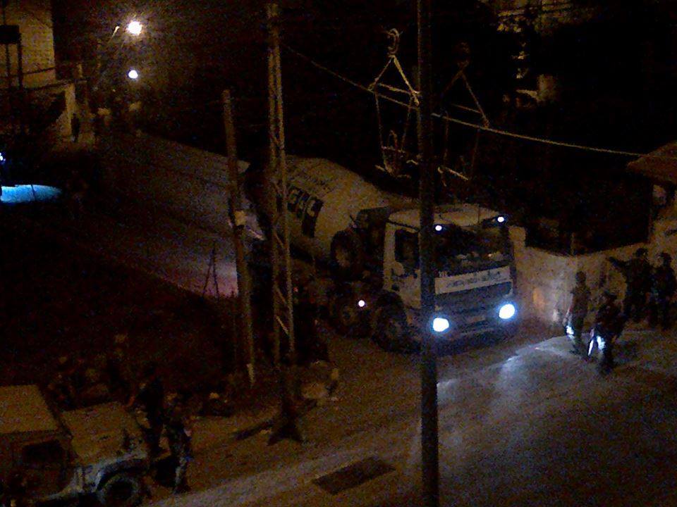 ووفقاً لوكالة الأنباء الرسمية فإن المئات من جنود الاحتلال اقتحموا فجراً منطقة دائرة السير وبئر المحجر وواد ابو اكتيله في مدينة الخليل، وقاموا بتفجير وهدم منزلي المطارد عامر أبو عيشة والأسير حسام القواسمي، وأغلقوا بالباطون والأسلاك الشائكة شقة المطارد مروان القواسمي، الذين يزعم الاحتلال أنهم نفذوا عملية خطف وقتل المستوطنين الثلاثة بالخليل في شهر حزيران المنصرم.