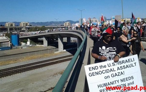 زمن برس، فلسطين: حال نحو خمسة ألاف متظاهر في ميناء مدينة أوكلاند بكاليفورنيا دون أن تتمكن سفينة إسرائيلية تابعة لشركة " زيم" الإسرائيلية من تفريغ حمولتها ، ما إضطر السفينة للمغادرة والبحث عن ميناء أخر وذلك لليوم الثاني على التوالي.