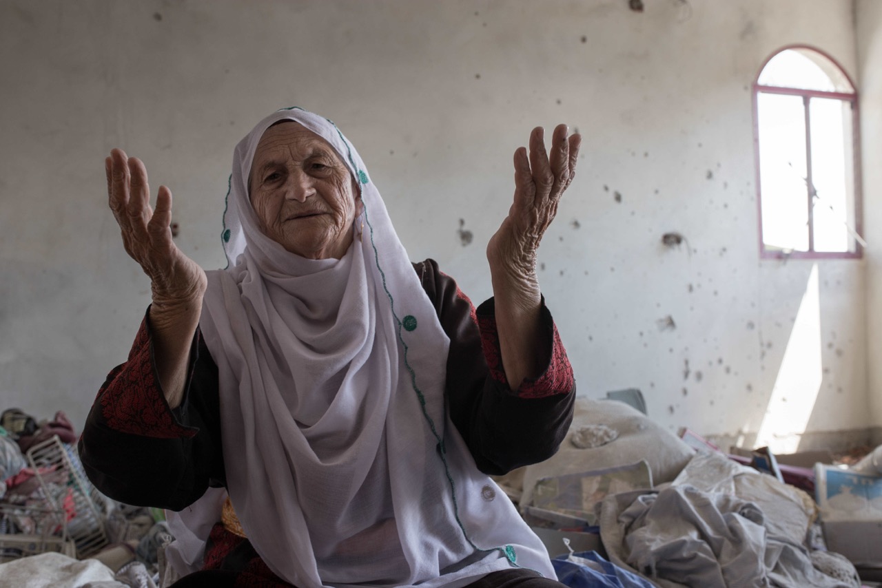 وتقول الحاجة عائشة التي تذكر لحظات النكبة كاملة وكأنها وقعت بالأمس"هي هي اللي عشناها بالحرب الأخيرة، بس الفرق بين نكبة 48 ونكبة ٢٠١٤ إني بالأولى كنت بنت صغيرة والأخيرة صرت أم لسبع رجال، وجدة لعشرين حفيد".