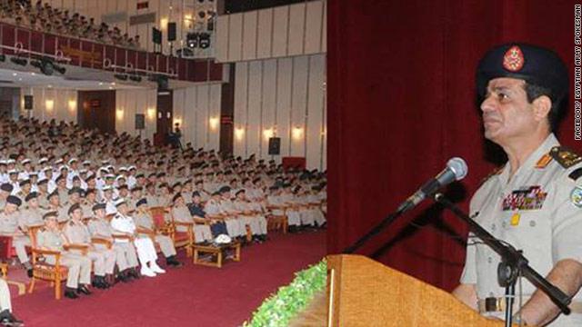 وقال في كلمة بمناسبة تخريج دفعة بالكلية البحرية والدفاع الجوي، في الإسكندرية ونقلها التلفزيون الرسمي "أدعو المصريين الشرفاء للنزول (إلى الشوارع) الجمعة لإعطائي تفويضا بمواجهة العنف." حسب ما نقلته سي أن أن بالعربية.