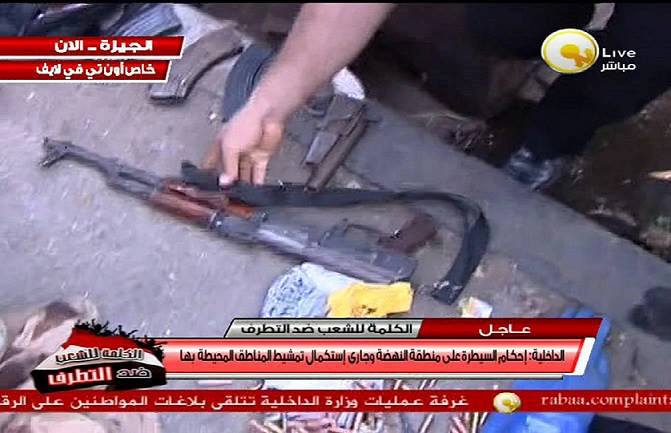 القاهرة: قالت الشرطة المصرية إنها عثرت على أسلحة متعددة وطلفات ذخيرات بميدان نهضة مصر في الجيزة، عقب إخلائه من معتصمي جماعة الإخوان المسلمين.