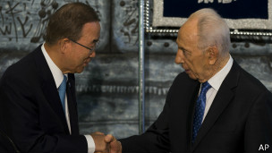 وأوضح بان كي مون في لقاء مشترك مع الرئيس الإسرائيلي، شمعون بيريز، قائلا "يجب التغلب على حالة الشك التي تكونت على مدى عشرين عاما من الجمود".
