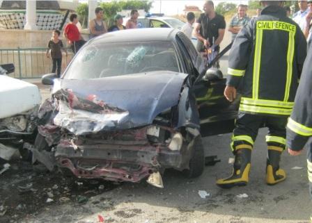 6 إصابات في حادث سير بين مركبتين بمدينة طولكرم