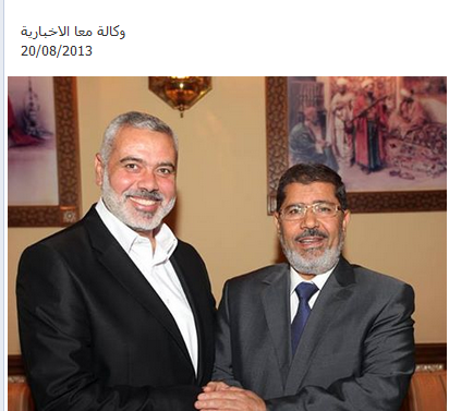 كما أرفق القراصنة بيانهم بصورة لرئيس الحكومة المقالة اسماعيل هنية، والرئيس المصري المعزول محمد مرسي.