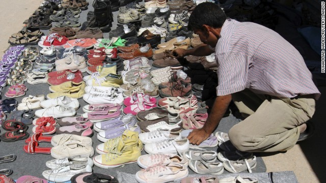 بائع متجول يعرض بضاعته داخل مخيم الزعتري.