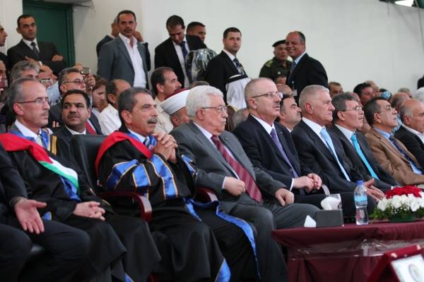رام الله: خرج الرئيس محمود عباس، ليلة أمس الفوج الأول من طلبة البكالوريوس في جامعة الاستقلال، في احتفال رسمي ووطني حضر رئيس الوزراء د. رامي الحمد لله ، ورئيس مجلس أمناء الجامعة اللواء توفيق الطيراوي، وأعضاء اللجنتين التنفيذية والمركزية، وعدد من السفراء والقناصل والدبلوماسيين، وأعضاء المجلس الثوري ومدراء الأجهزة الأمنية ورؤساء الجامعات، وعدد من المواطنين من كافة أنحاء الوطن قدر عددهم بستة آلاف مواطن.