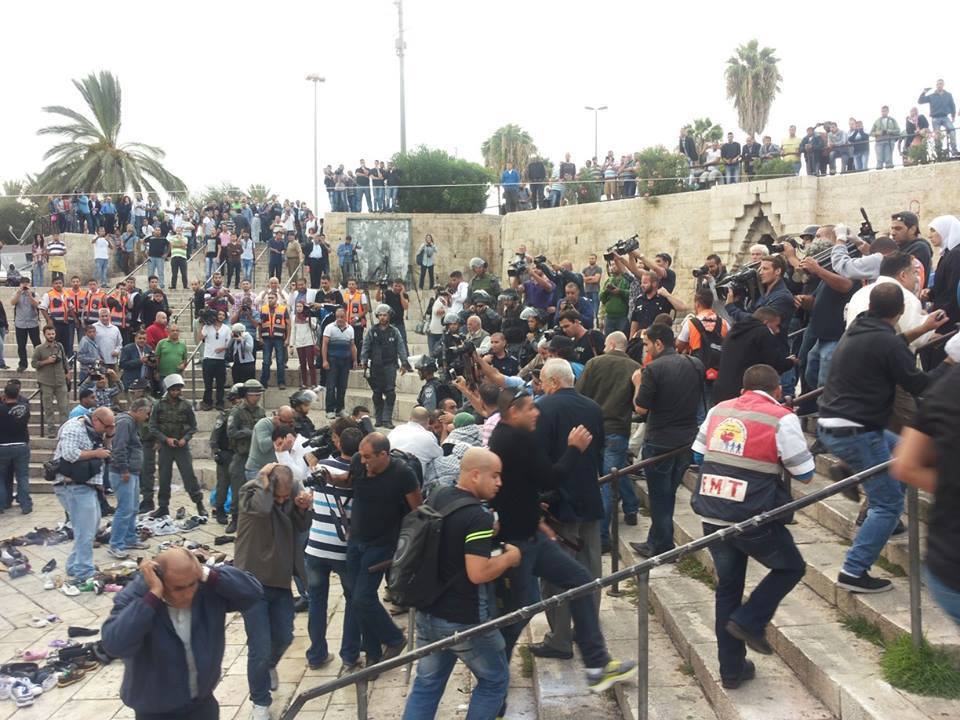 القدس: إصيب، مساء اليوم الثلاثاء، 30 مواطنا برصاص قوات الاحتلال، واعتقل 11 آخرين ، خلال قمع الاحتلال لوقفة ومسيرة جماهيرية حاشدة دعت لها القوى الدينية والوطنية في القدس نُصرةً للمسجد الأقصى المبارك ضد محاولات استهدافه من قبل الاحتلال والجماعات اليهودية.