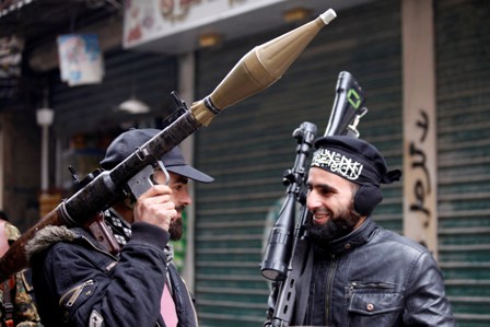 ب. الاستيلاء على وسائل قتالية متقدمة للنظام السوري، بينها السلاح الكيميائي: تبذل جبهة النصرة وتنظيمات جهادية أخرى جهودًا متواصلة للسيطرة على مخازن سلاح تابعة للنظام السوري. كلما قلت قوة السلطة في سوريا وقدرتها على الُحكم، يُحتمَل أن تقع وسائل قتالية للجيش السوري، بما فيها أسلحة متقدمة، بين أيدي الجهاديين. كذلك، يمكن أن "تتدحرج" إلى أيديهم وسائل قتالية تُزوّد للجيش السوري الحر وتنظيمات إضافيّة لها صلات بالغرب[3]. كذلك، كلّما ضعف النظام السوري، يُحتمَل أن تقع مخازين سلاح كيميائي وبيولوجي للنظام السوري بين يدَي جبهة النصرة وتنظيمات جهاديّة أخرى.يمكن أن تقوم هذه التنظيمات باستخدام هذه الأسلحة لأهداف إرهابيّة، دون اعتبارات كابحة تضبط سلوك تنظيمات إرهابيّة أخرى، مثل حزب الله أو المنظمات "الإرهابية" الفلسطينية. إضافةَ إلى ذلك، فإنّ وسائل قتالية، مصدرها سوريا، يمكن أن تنتقل إلى ساحات أخرى للعمل "الإرهابي" حسب النموذج الليبي (وَجدت وسائل قتالية سُلبت من مخازن النظام الليبي طريقها إلى مراكز للعمل "الإرهابي").