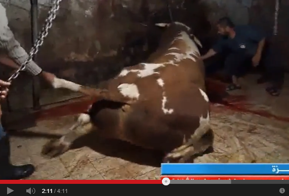 فيديو لذبح عجل ضخم في غزة يثير جدلاً على مواقع التواصل الاجتماعي