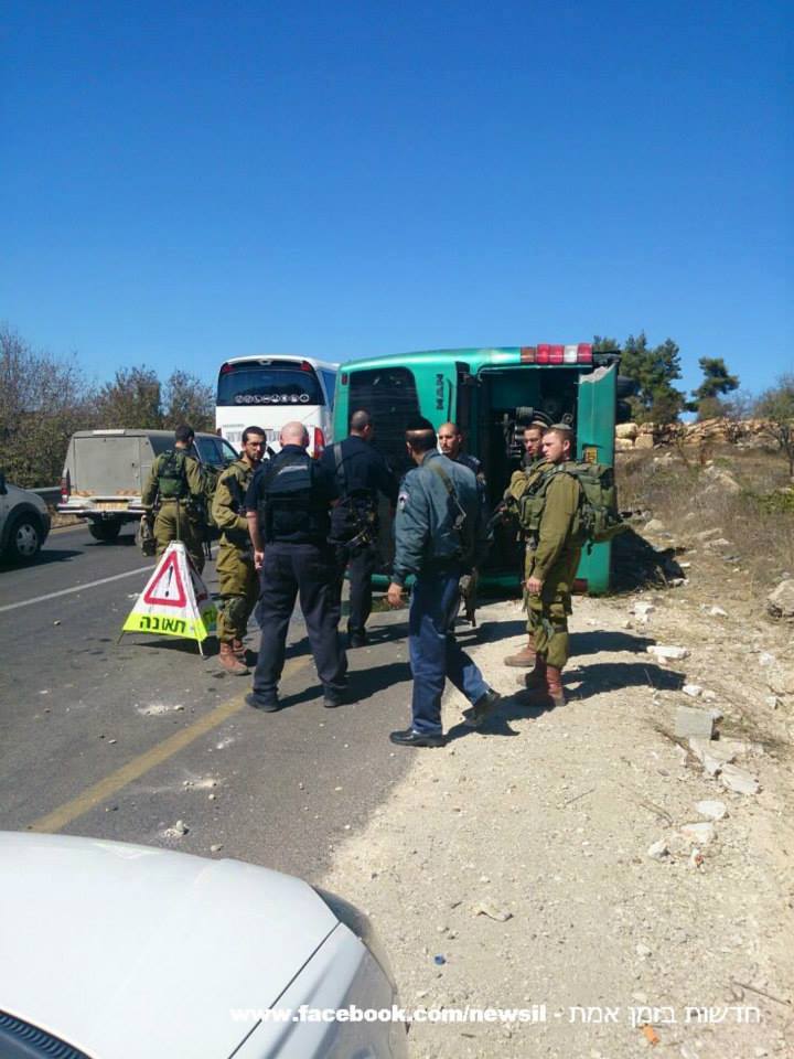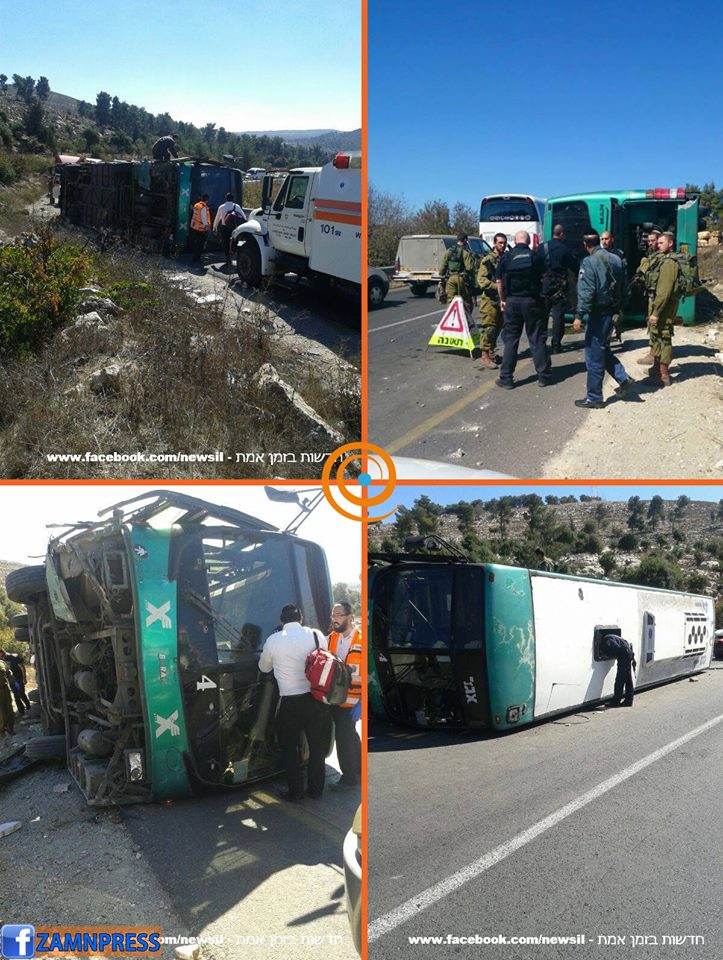 بالصور: إصابة 16 إسرائيلياً في انقلاب حافلة شمال الخليل
