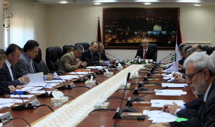 وأكد مجلس الوزراء أن توالي تصريحات المسؤولين الإسرائيليين من وزراء وأعضاء كنيست ضد المفاوضات وحل الدولتين وضد قيام دولة فلسطين، إضافة إلى إصرار الحكومة الإسرائيلية على تحدي كافة دعوات المجتمع الدولي، واستمرار انتهاكاتها للشرعية الدولية من خلال حملات التحريض والقرارات الاستيطانية المكثفة، والتصعيد الخطير في وتيرة الاعتداءات العسكرية الإسرائيلية ضد أبناء شعبنا ومصادر رزقهم، في المناطق المُسماة (ج) وتجمعاتهم السكنية فيها، خاصةً في الأغوار، ومناطق خلف الجدار، والتي شملت هدم ومصادرة الخيام والبركسات والمنازل، وتدمير وتجريف الطرق، واقتلاع المزروعات، وقطع الأشجار، في انتهاكٍ صارخ لمبادئ حقوق الإنسان وقواعد القانون الدولي، هي بمثابة الدليل القاطع على أن خيار إسرائيل الأول والأخير هو التوسع والتهويد وسلب الأرض الفلسطينية، وليس الوصول إلى الحل الدائم الذي يضمن للفلسطينيين حقهم في تقرير المصير، وإقامة الدولة المستقلة على حدود عام 1967 وعاصمتها القدس، ويحقق حلاً عادلاً ومقبولاً لقضية اللاجئين وفق القرار 194، ويضمن الأمن والاستقرار والسلام للجانبين وللمنطقة جميعها.