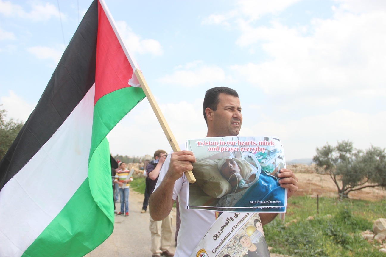 ورفع المتظاهرون أيضا صور المتضامن الناشط   تريستيان اندرسون، وشعارات أخرى  منها ترستيان في قلوبنا نصلي من أجل شفائك، وهو شاب أمريكي جاء ليتضامن مع الفلسطينيين في عام ٢٠٠٩فأصيب بقنبلة غاز اطلقها حرس الحدود الإسرائيلي أصابته إصابة مباشره في الرأس أدت إلى شلل رباعي كامل ودائم في كافة أطرافه، وأفقدته البصر في عينه اليمنى، كان ذلك في ١٣/٣/٢٠٠٩ في قرية نعلين غرب رام الله، حيث يصادف اليوم الذكرى السنوية السادسة لإصابته، حيث أن القنبلة التي أصيب بها أندرسون هي من نفس النوع الذي تسببت في استشهاد باسم أبو رحمة، وقد تم رفع قضية على الحكومة الإسرائيلية ولغاية الأن يماطلون في قبول الدعوى بحجة انه كان في منطقة حرب، وفي احدى الجلسات قال الادعاء العام انه من الممكن أن الفلسطينيين هم من اطلقوا عليه النار وليس جنود حرس الحدود، في محاوله للتنصل من جريمتهم.