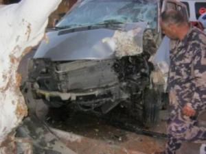 اصابة خطيرة بحادث اصطدام مركبة بسور استنادي